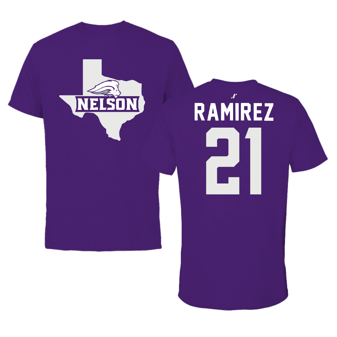 Nelson University Soccer Purple State Performance Tee - #21 Jafet Ramirez