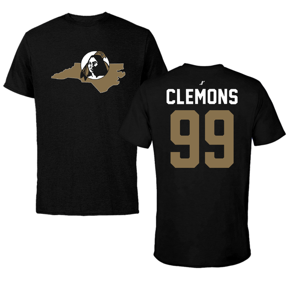 University of North Carolina at Pembroke Football Black State Tee - #99 Jahari Clemons