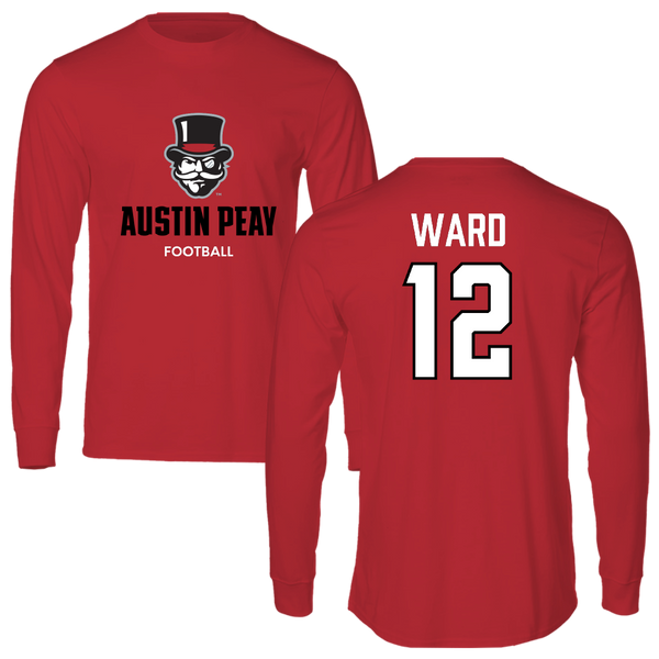 Austin Peay State University Football Red General Long Sleeve - #12 Jaheim Ward