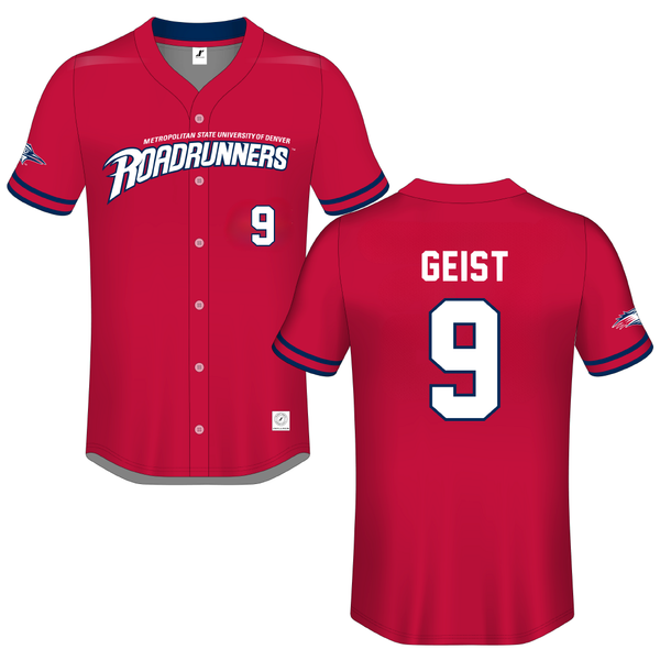 Metropolitan State University of Denver Red Button-Down Jersey - #9 Jaiden Geist