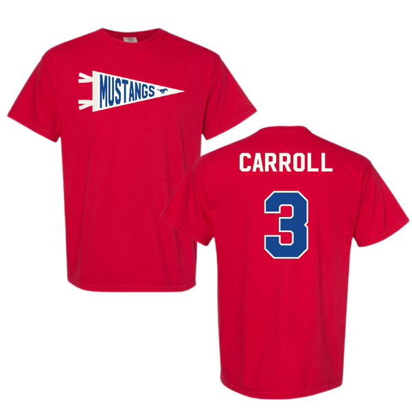 Southern Methodist University Football Red Pennant Comfort Colors Tee - #3 Jamarion Carroll