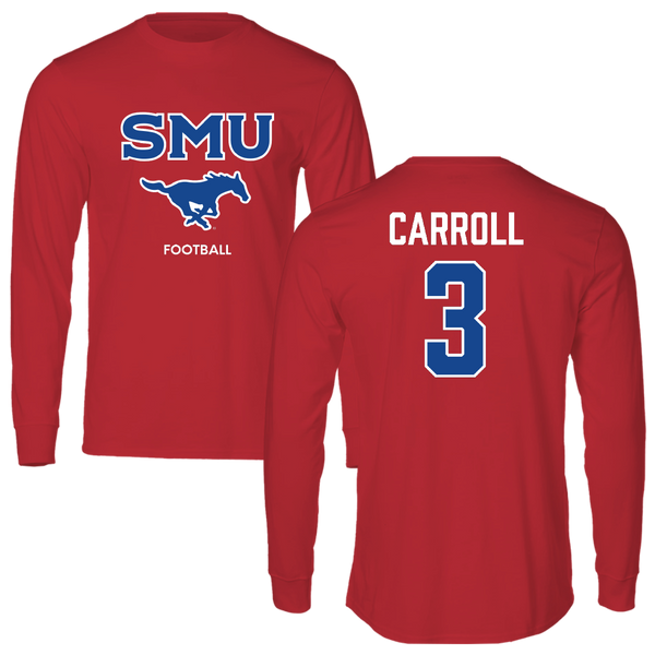 Southern Methodist University Football Canvas Red Touchdown Long Sleeve - #3 Jamarion Carroll