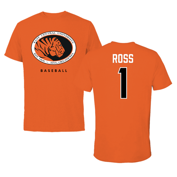East Central University Baseball True Orange Tee - #1 Jameson Ross