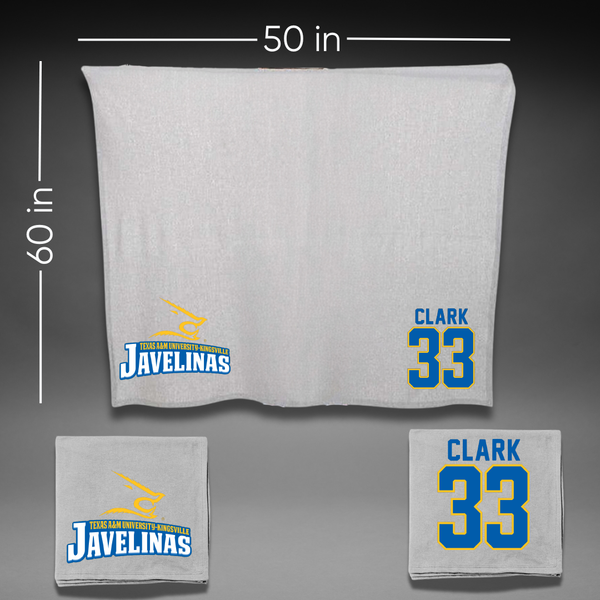 Texas A&M University-Kingsville Basketball Gray Javelinas Blanket - #33 Jason Clark