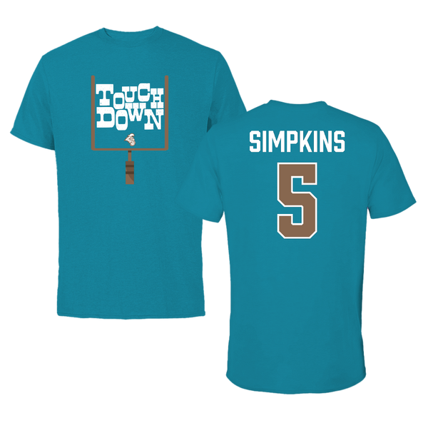Coastal Carolina University Football Teal Touchdown Tee - #5 Ja'Vin Simpkins