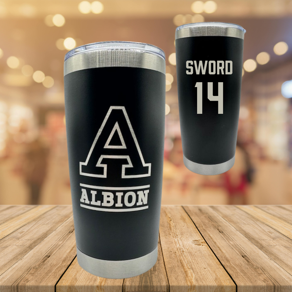 Albion College Football Black Stainless Steel Tumbler - #14 Jaxen Sword