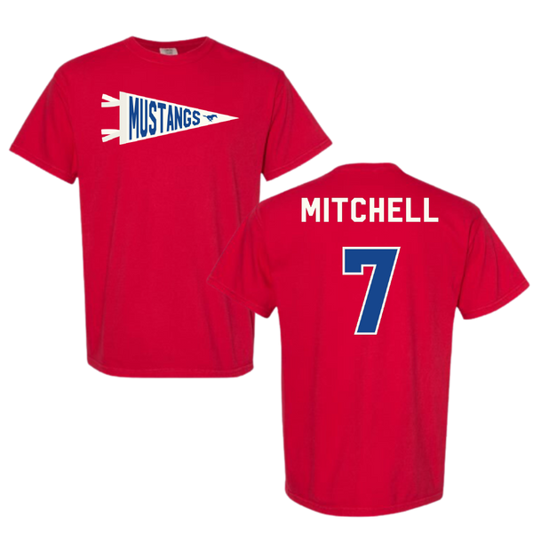 Southern Methodist University Soccer Red Pennant Comfort Colors Tee - #7 Jaylinn Mitchell