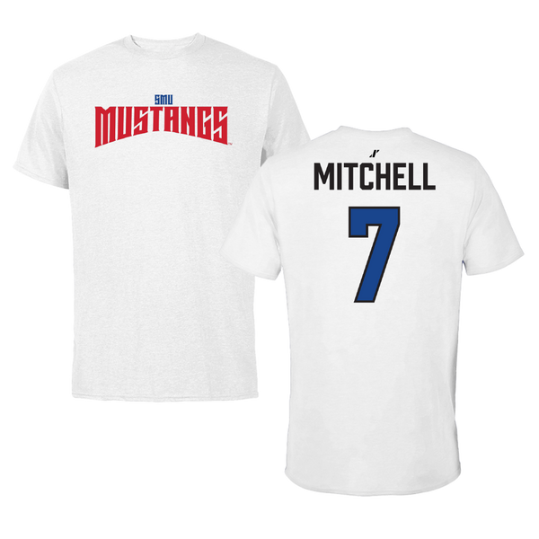 Southern Methodist University Soccer (M) White Tee - #7 Jaylinn Mitchell
