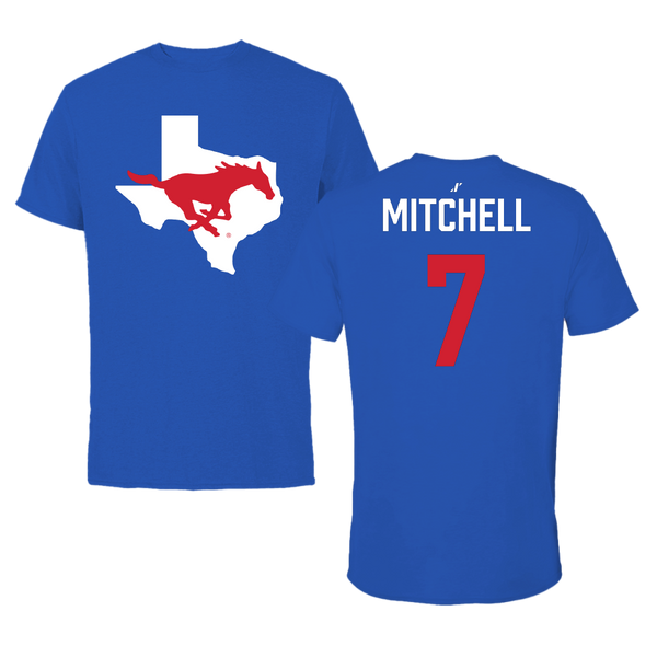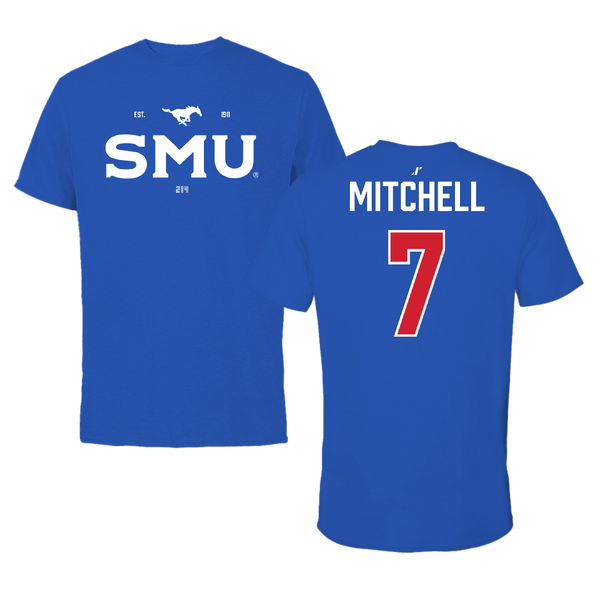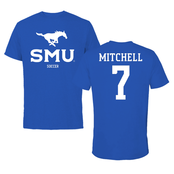Southern Methodist University Soccer (M) Blue Mascot Tee - #7 Jaylinn Mitchell