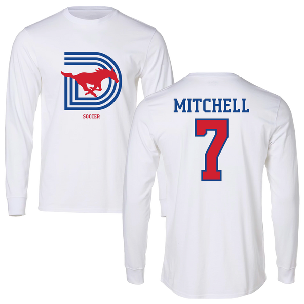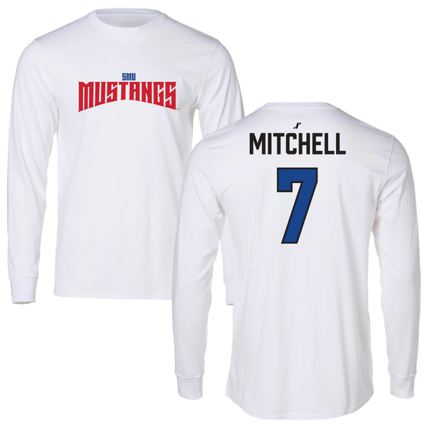 Southern Methodist University Soccer (M) White Long Sleeve - #7 Jaylinn Mitchell