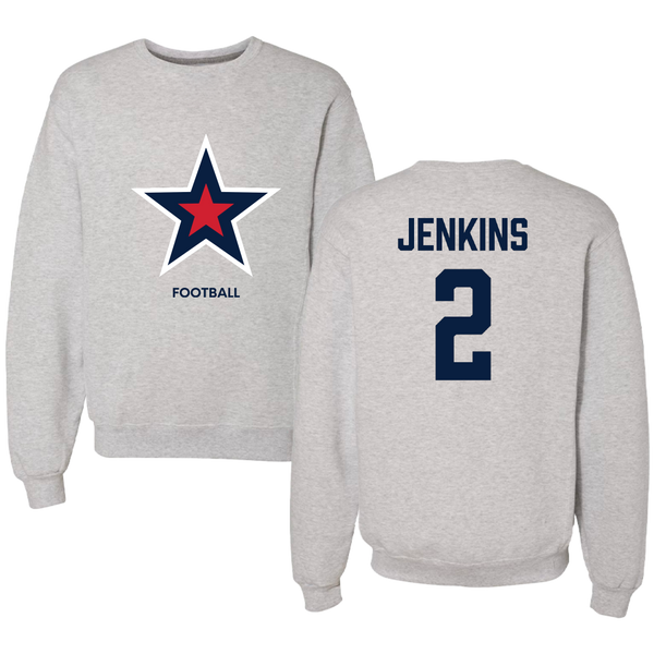 Robert Morris University Football Light Gray Crewneck - #2 Jayson Jenkins