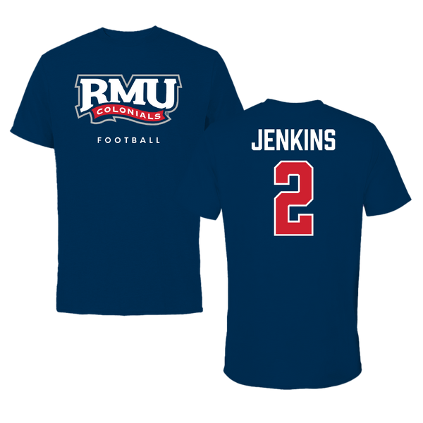 Robert Morris University Football Navy Tee - #2 Jayson Jenkins