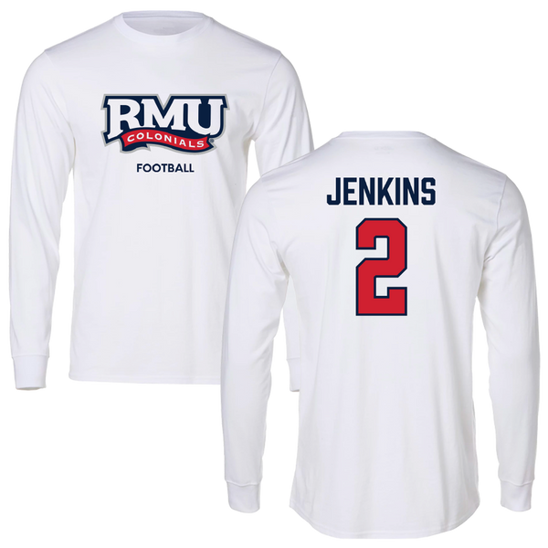 Robert Morris University Football White Long Sleeve - #2 Jayson Jenkins