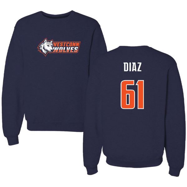 Western Connecticut State University Football Navy Wolves Crewneck - #61 Jeramie Diaz