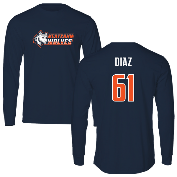 Western Connecticut State University Football Navy Wolves Long Sleeve - #61 Jeramie Diaz