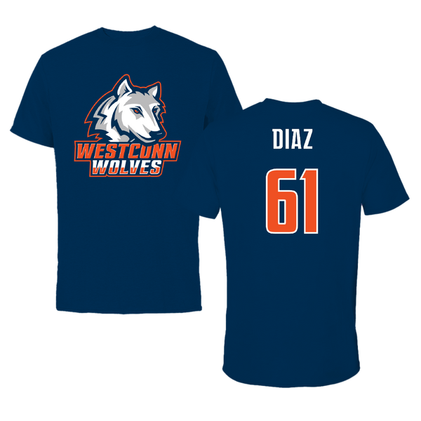 Western Connecticut State University Football Navy Wolves Tee - #61 Jeramie Diaz
