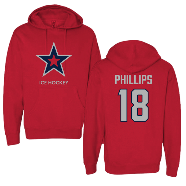 Robert Morris University Ice Hockey (W) Red Mascot Hoodie - #18 Jersey Phillips