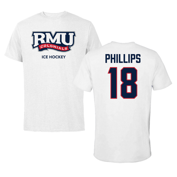 Robert Morris University Ice Hockey White Classic Tee - #18 Jersey Phillips
