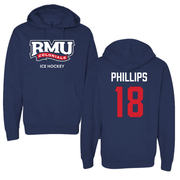 Robert Morris University Ice Hockey (W) Navy Hoodie - #18 Jersey Phillips