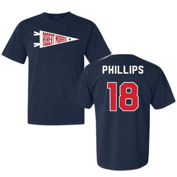 Robert Morris University Ice Hockey Navy Pennant Comfort Colors Tee - #18 Jersey Phillips