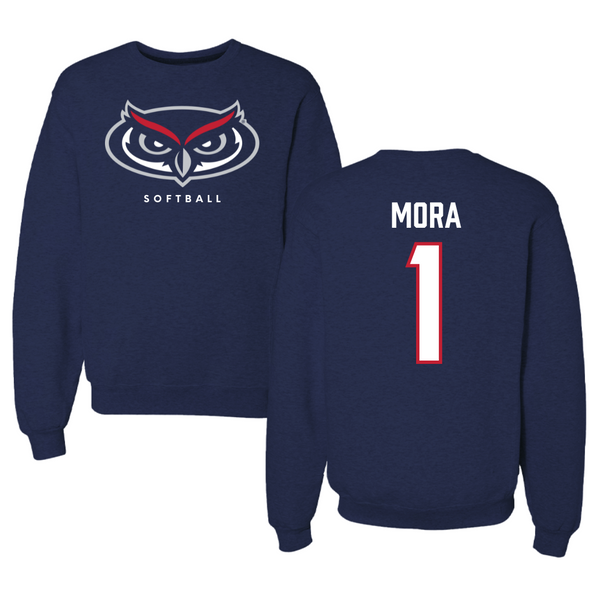 Florida Atlantic University Softball Navy Crewneck - #1 Jesiana Mora