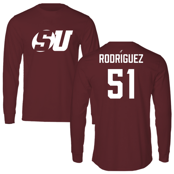 Schreiner University Baseball Maroon Performance Long Sleeve - #51 Jeter Rodriguez