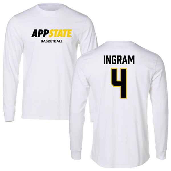 Appalachian State University Basketball (W) White Block Long Sleeve - #4 J'Mani Ingram