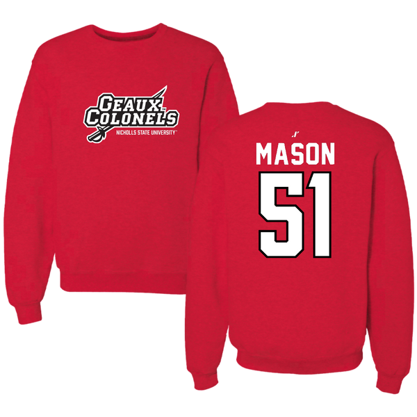 Nicholls State University Football Red General Crewneck - #51 Joe Mason