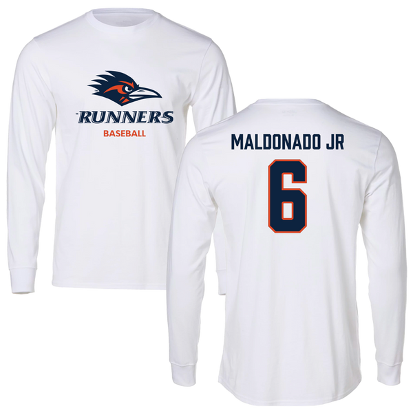University of Texas at San Antonio Baseball White Long Sleeve - #6 John Maldonado Jr