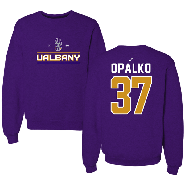 University at Albany Football Purple General Crewneck - #37 John Opalko