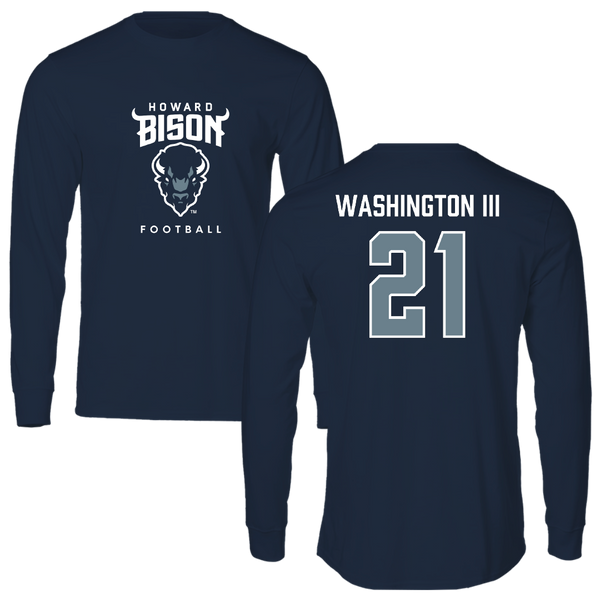 Howard University Football Navy Long Sleeve - #21 John Washington III