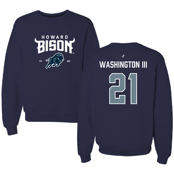 Howard University Football Navy General Crewneck - #21 John Washington III