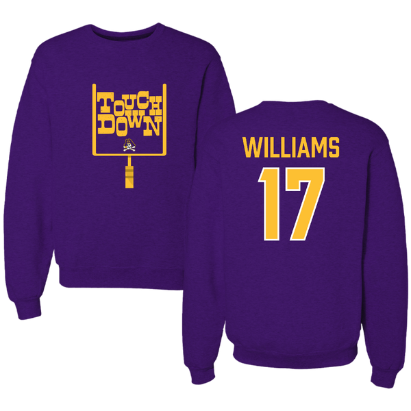 East Carolina University Football Purple Touchdown Crewneck - #17 Johnny Williams