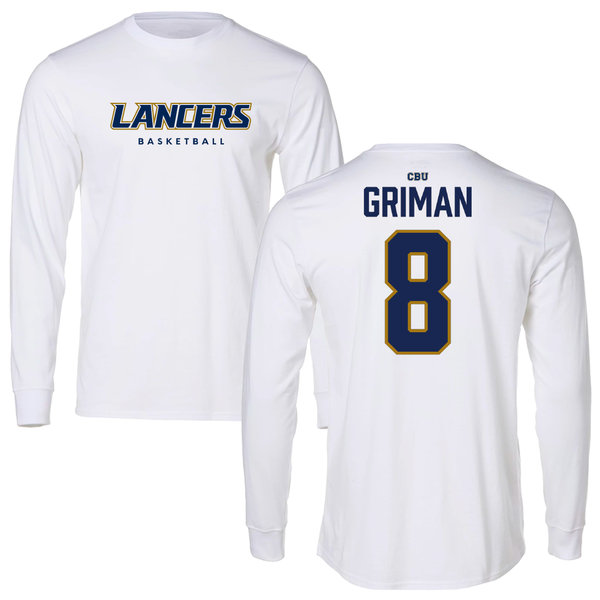 California Baptist University Basketball White Long Sleeve - #8 Jonathan Griman