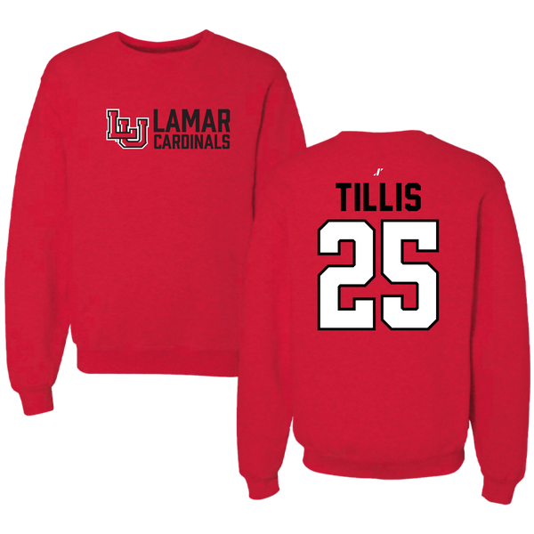 Lamar University Football Red Touchdown Crewneck - #25 Jonavon Tillis