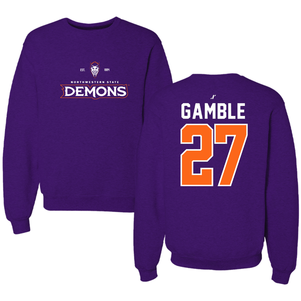 Northwestern State University Volleyball Purple General Crewneck - #27 Jordan Gamble