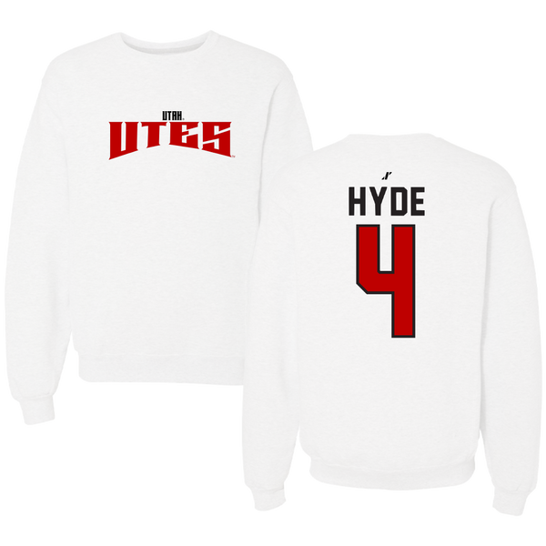 University of Utah Lacrosse White Classic Crewneck - #4 Jordan Hyde