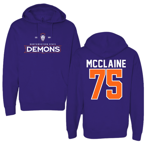 Northwestern State University Football Purple General Hoodie - #75 Jordan McClaine
