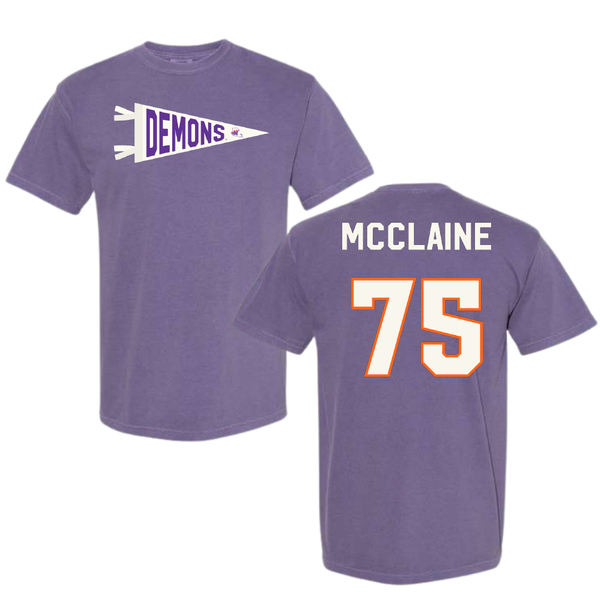 Northwestern State University Football Purple Pennant Comfort Colors Tee - #75 Jordan McClaine
