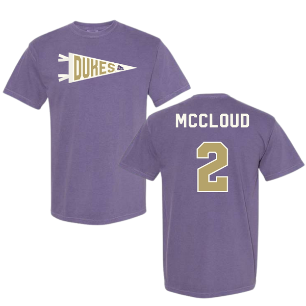 James Madison University Football Purple Pennant Comfort Colors Tee - #2 Jordan McCloud
