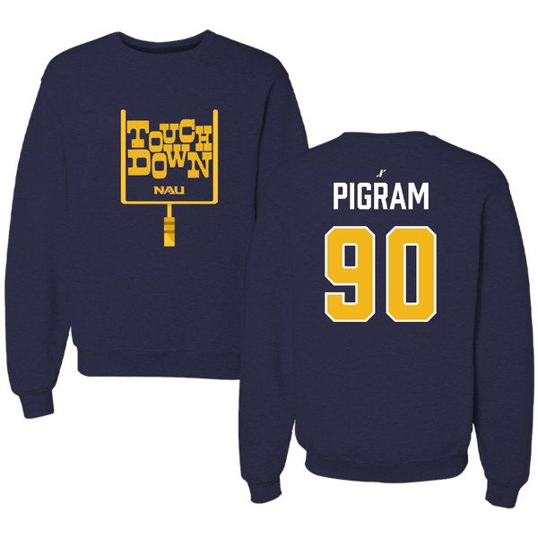 Northern Arizona University Football Navy Touchdown Crewneck - #90 Jordan Pigram