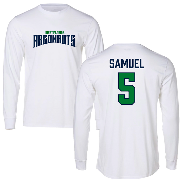 University of West Florida Basketball (M) White Classic Long Sleeve - #5 Jordan Samuel