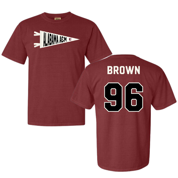 Alabama A&M University Football Maroon Pennant Comfort Colors Tee - #96 Jorhdan Brown
