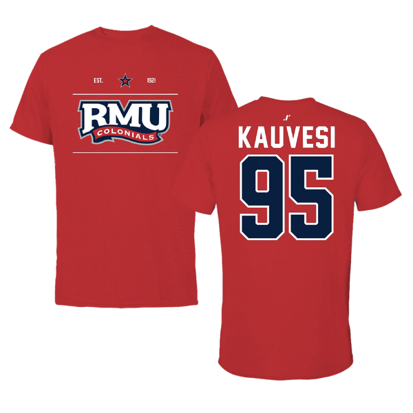 Robert Morris University Football Red Tee - #95 Josh Kauvesi
