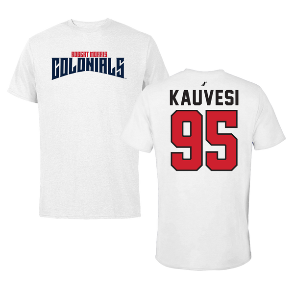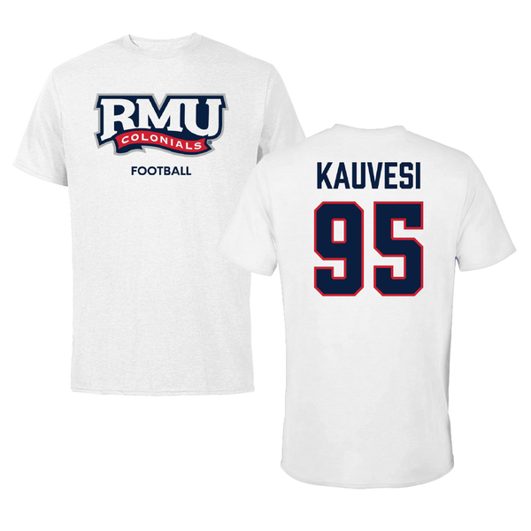 Robert Morris University Football White Classic Tee - #95 Josh Kauvesi