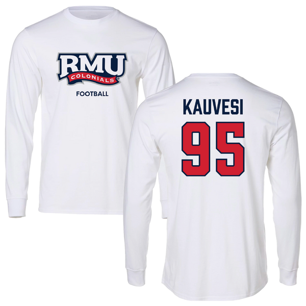 Robert Morris University Football White Long Sleeve - #95 Josh Kauvesi