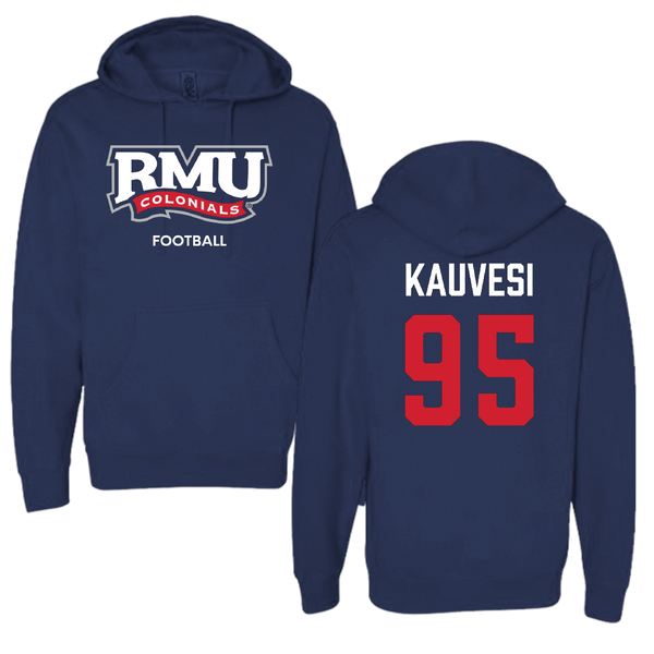 Robert Morris University Football Navy Hoodie - #95 Josh Kauvesi