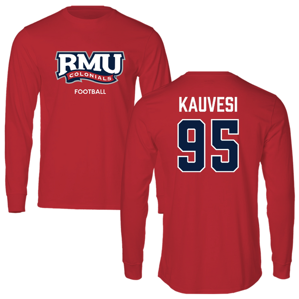 Robert Morris University Football Red Long Sleeve - #95 Josh Kauvesi