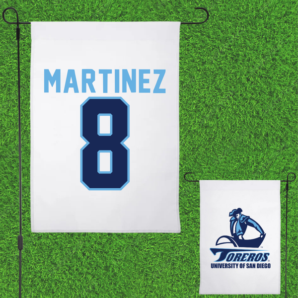 University of San Diego Soccer White Garden Flag - #8 Josh Martinez
