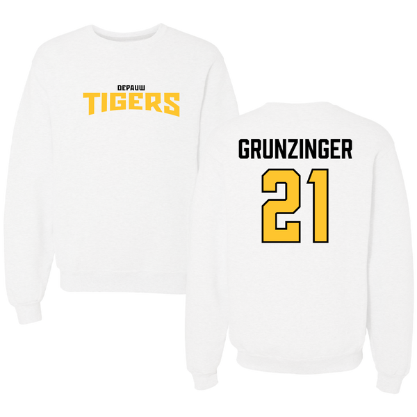 DePauw University Basketball (W) White Classic Crewneck - #21 Josie Grunzinger